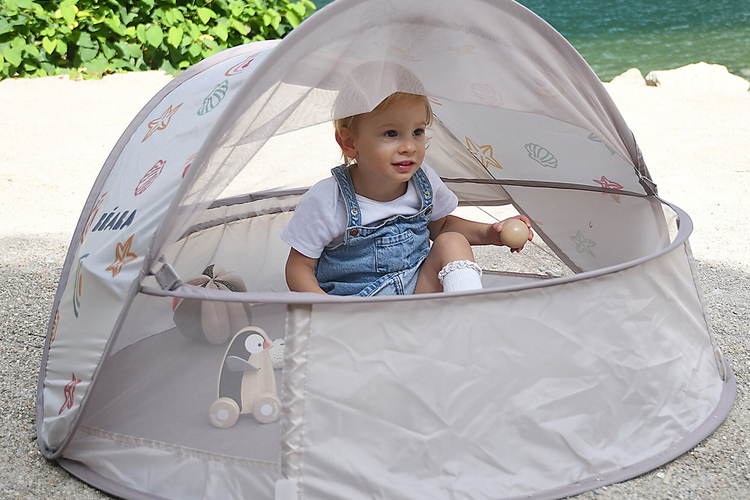 Пляжная палатка идеально подходит для защиты от солнца и песка на пляже, обеспечивая малышу комфортное место для сна или игры.