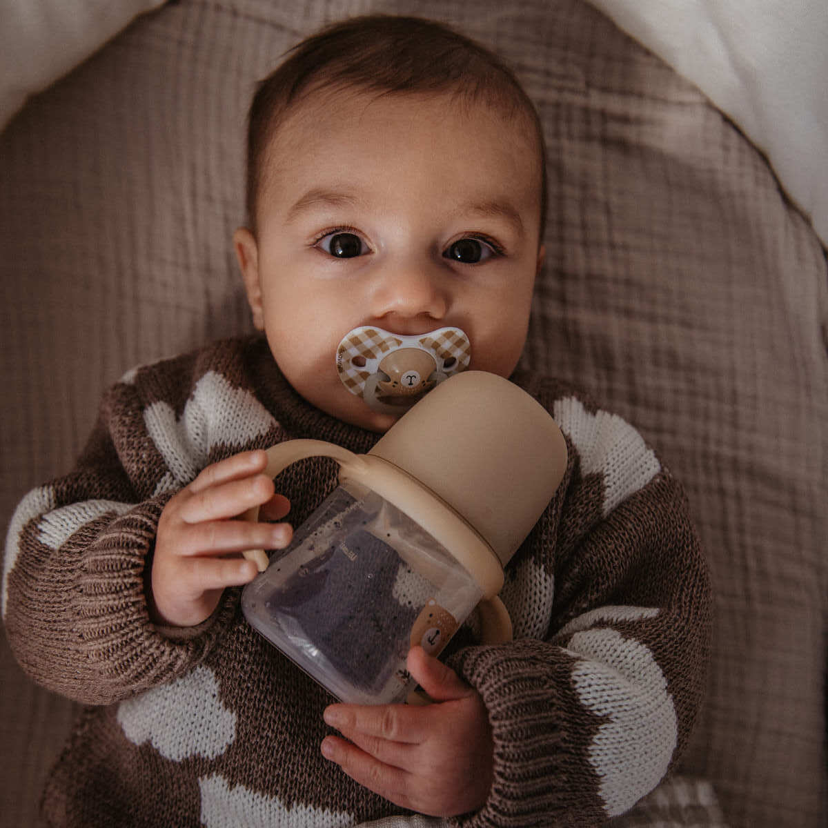 Бутылочка с ручками Suavinex Night Wild с силиконовой физиологической соской SX Pro делает процесс кормления максимально естественным. Симметричная соска SX Pro позволяет ребенку удерживать язык в том же комфортном положении, что и при кормлении грудью. Антиколиковый клапан препятствует заглатыванию лишнего воздуха во время сосания и снижает риск возникновения коликов у ребенка.