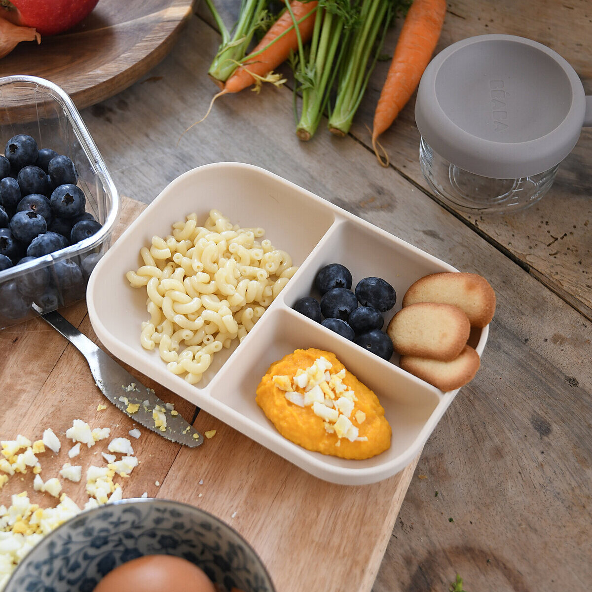 Детская силиконовая тарелка с тремя отсеками поможет сохранить текстуры и вкус разных блюд при их одновременной подаче. Это отличный вариант для малышей, которые не любят, чтобы еда смешивалась.