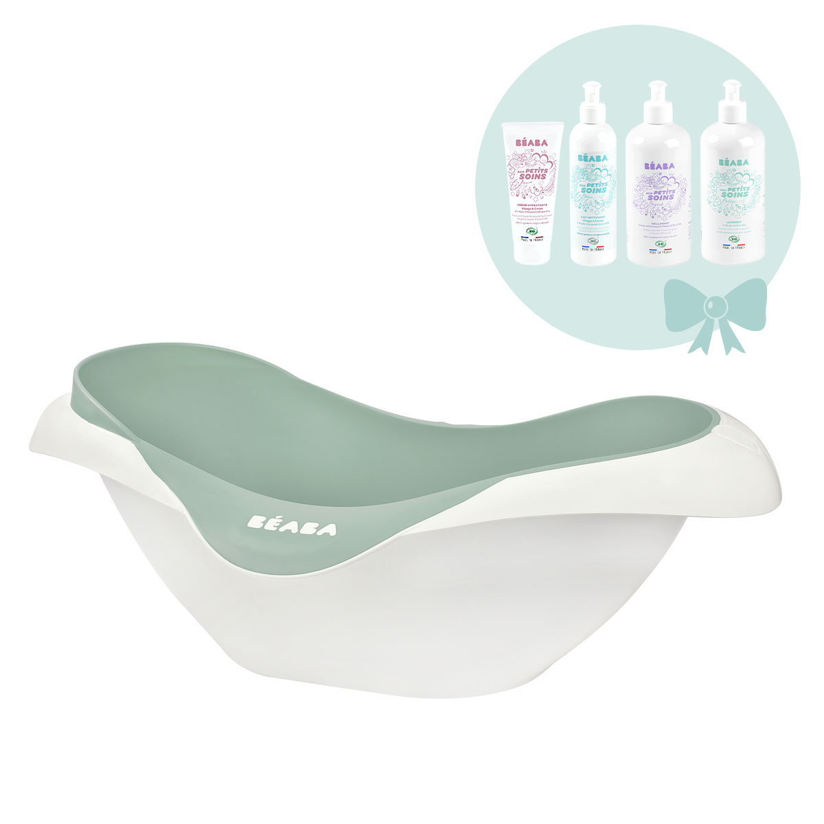 При покупке ванночки BEABA вы получаете в подарок набор из 4-х косметических средств BEABA.