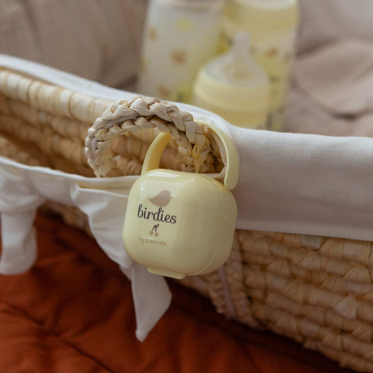 - Предназначен для хранения 2-х пустышек из коллекции Suavinex Birdies