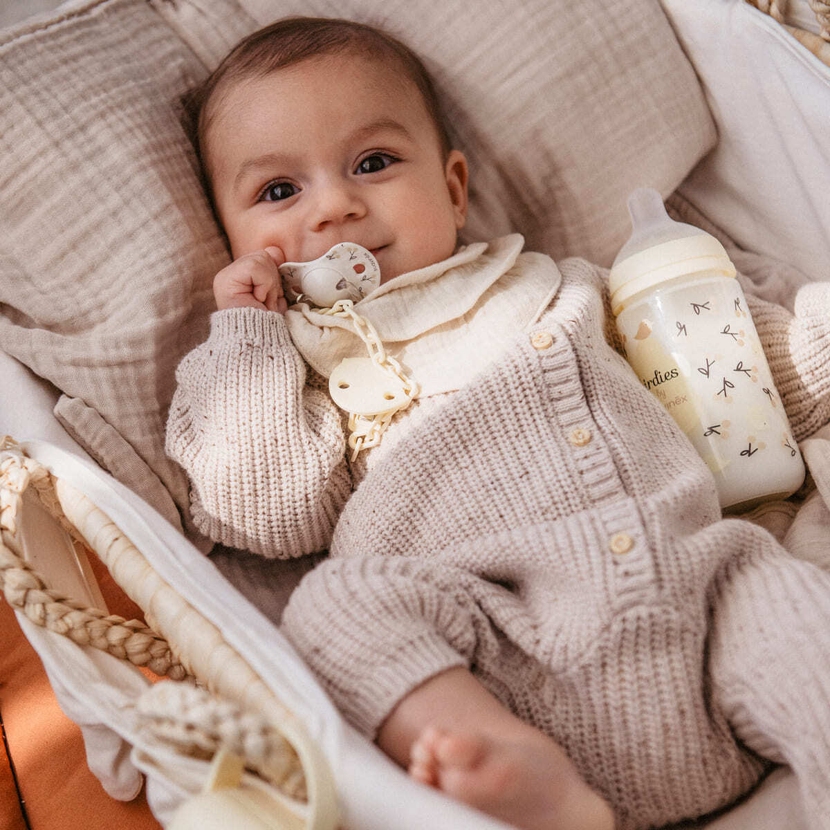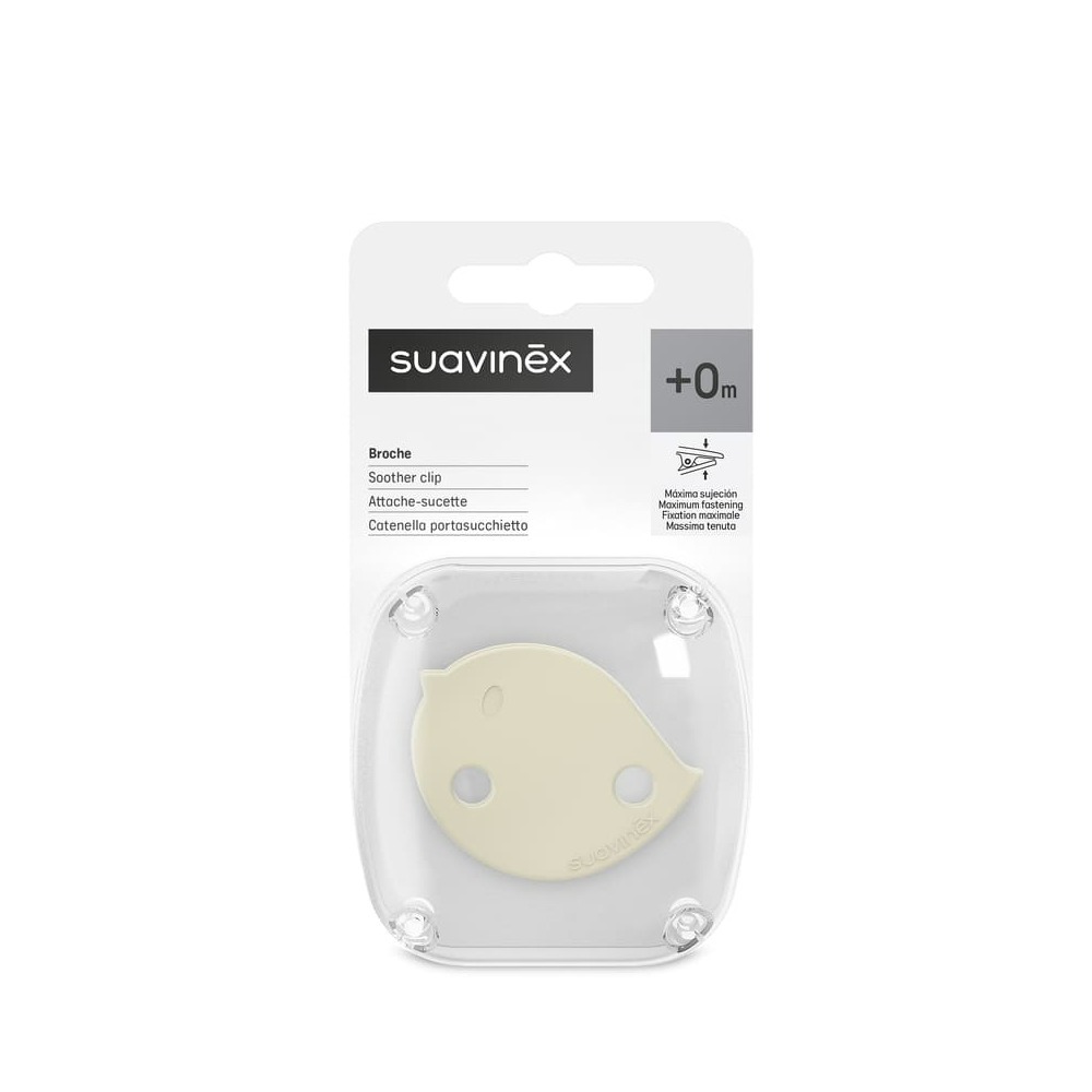 Клипса для пустышки Suavinex Birdies - не просто эффектное дополнение к соске, а полезный аксессуар. Благодаря миниатюрной клипсе, пустышка не потеряется и всегда будет под рукой. Модель состоит непосредственно из самой клипсы (на прищепке), цепочки и кольца (карабина). К соске она крепится при помощи кольца, а к одежде (сумке, кроватке) - за счет прищепки. Клипса легко пристегивается и отстегивается, при этом прочно держится. Благодаря гибкой цепочке аксессуар не сковывает движений малыша.