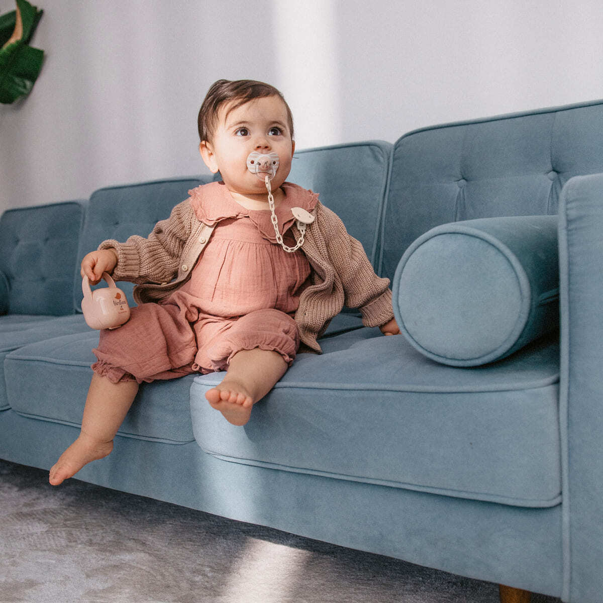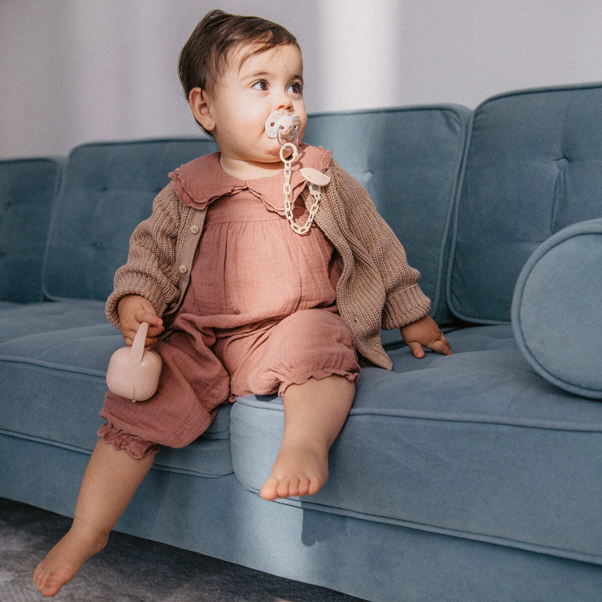 Клипса для пустышки Suavinex Birdies - не просто эффектное дополнение к соске, а полезный аксессуар. Благодаря миниатюрной клипсе, пустышка не потеряется и всегда будет под рукой. Модель состоит непосредственно из самой клипсы (на прищепке), цепочки и кольца (карабина). К соске она крепится при помощи кольца, а к одежде (сумке, кроватке) - за счет прищепки. Клипса легко пристегивается и отстегивается, при этом прочно держится. Благодаря гибкой цепочке аксессуар не сковывает движений малыша.
