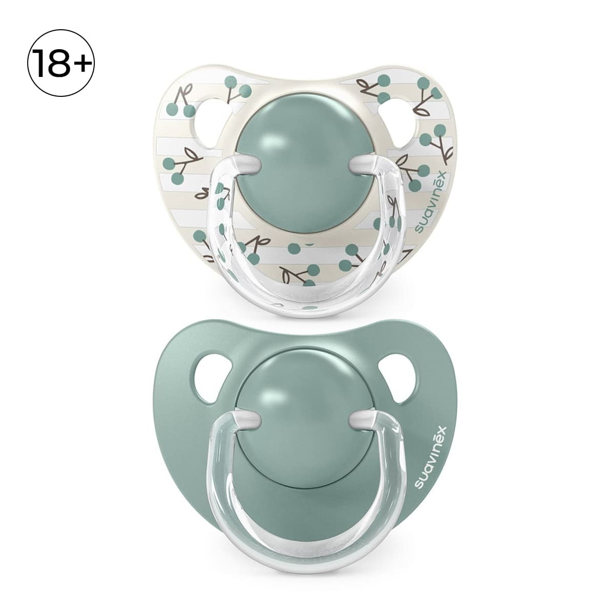 Анатомическая пустышка Suavinex с соской со скошенным краем анатомически правильно располагается во рту ребенка, не препятствуя естественному развитию ротовой полости и прикуса.