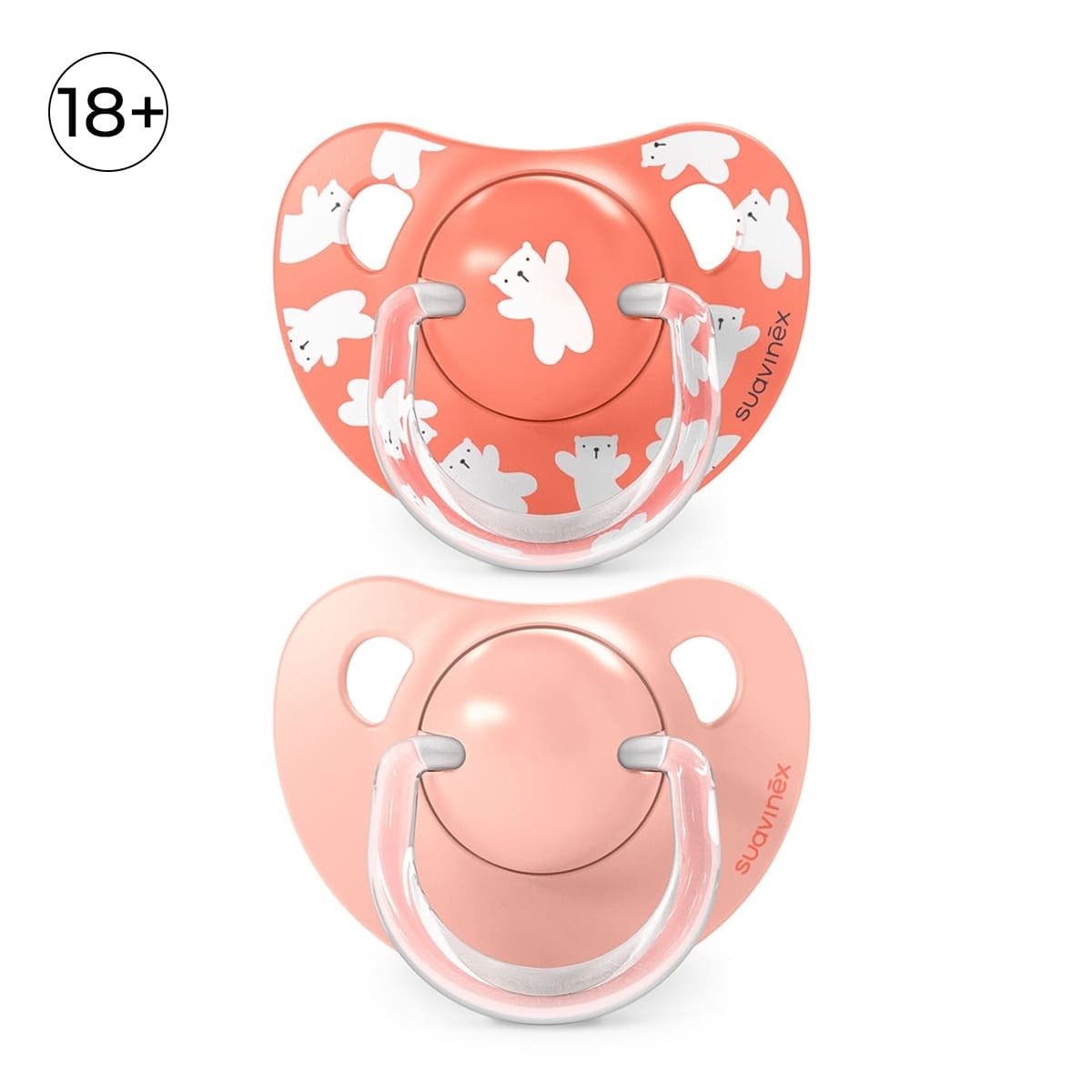 Анатомическая пустышка Suavinex с соской со скошенным краем анатомически правильно располагается во рту ребенка, не препятствуя естественному развитию ротовой полости и прикуса.