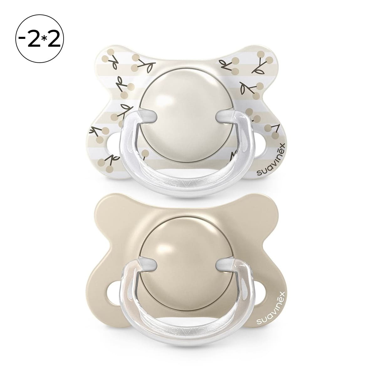 Набор физиологических пустышек Suavinex Birdies бежевый, -2/2 мес, 2 шт