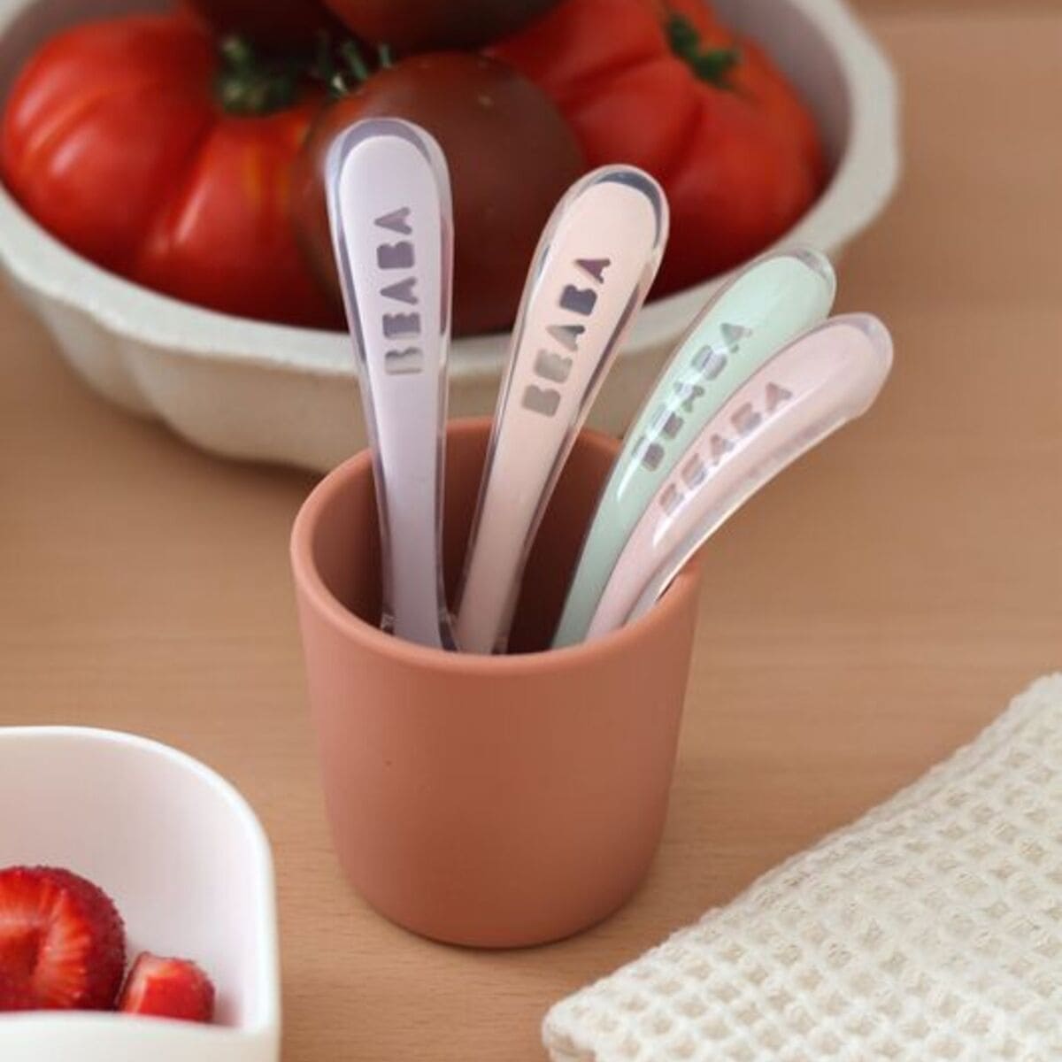 Набор из 4-х силиконовых ложек BEABA – идеальный аксессуар для первого прикорма. Ложки разработаны специально для маленькой детской ручки и предназначены для обучения навыку самостоятельной еды. Подходят с 8-ми месяцев.