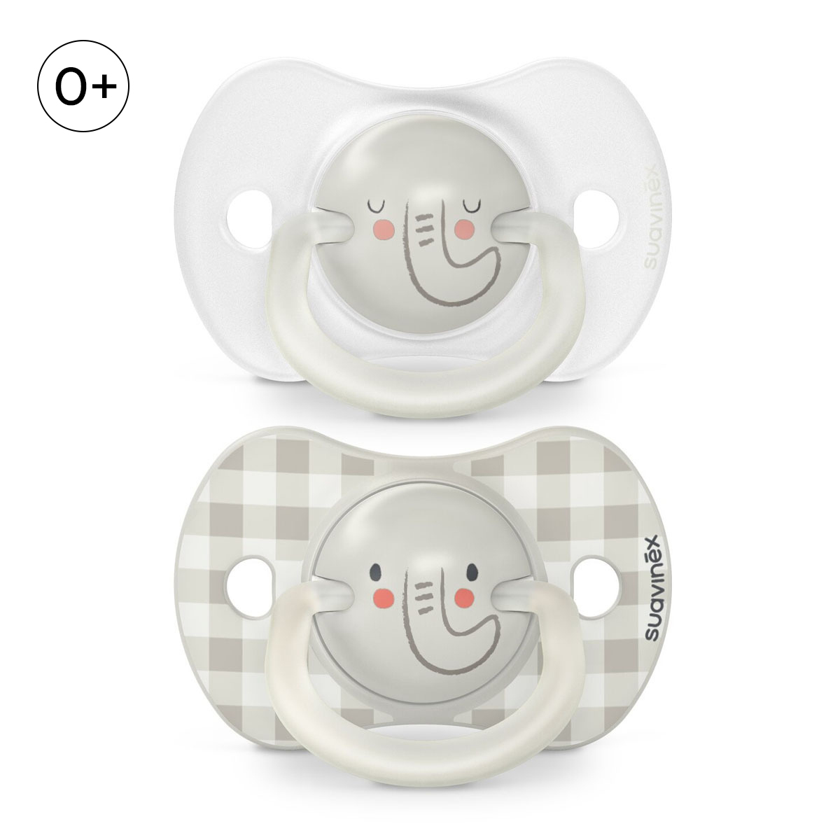 Физиологическая детская пустышка Suavinex из коллекции Night&Day относится к категории ортодонтических. Она имеет симметричную соску SX Pro, которая анатомически правильно располагается во рту ребенка. Такая соска не препятствует естественному развитию ротовой полости и прикуса. Материал соски — ультрамягкий силикон с пескоструйной обработкой: к нему не прилипают ни пыль, ни ворсинки. Корпус пустышки имеет специальные вентиляционные отверстия, благодаря чему не вызывает раздражение кожи в области рта.