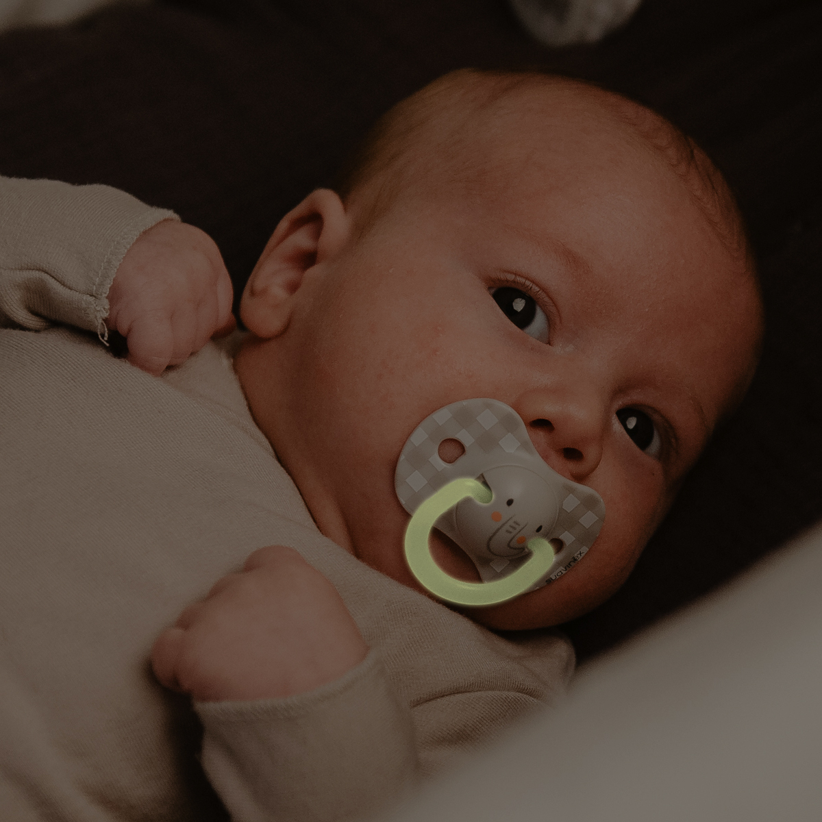 Физиологическая детская пустышка Suavinex из коллекции Night&Day относится к категории ортодонтических. Она имеет симметричную соску SX Pro, которая анатомически правильно располагается во рту ребенка. Такая соска не препятствует естественному развитию ротовой полости и прикуса. Материал соски — ультрамягкий силикон с пескоструйной обработкой: к нему не прилипают ни пыль, ни ворсинки. Корпус пустышки имеет специальные вентиляционные отверстия, благодаря чему она не вызывает раздражение кожи в области рта.