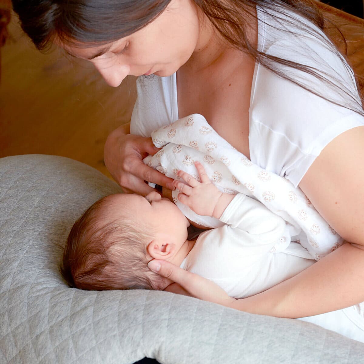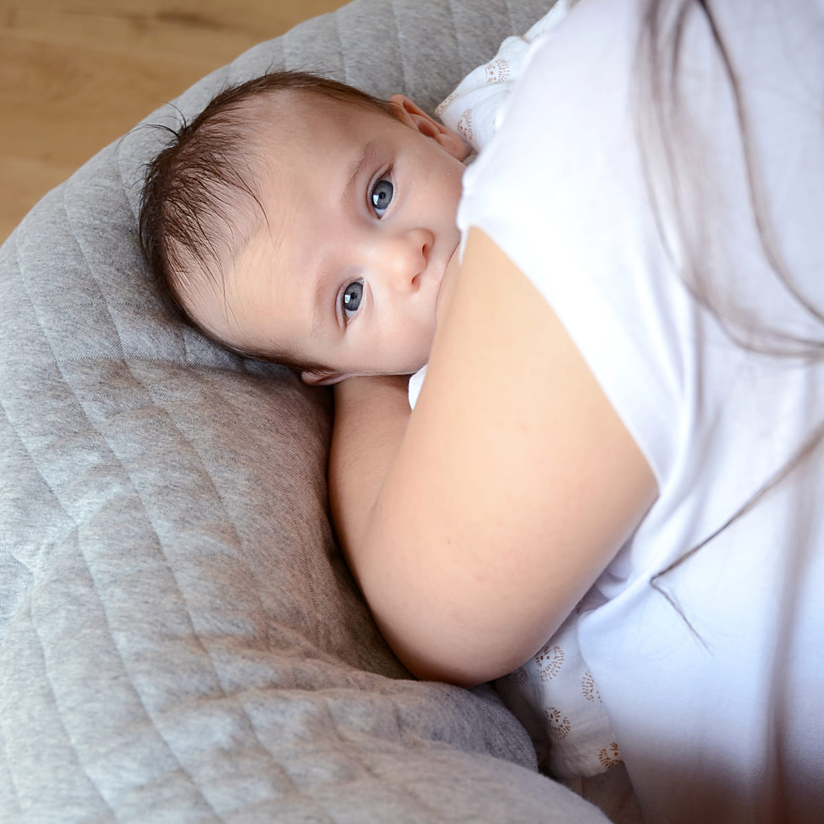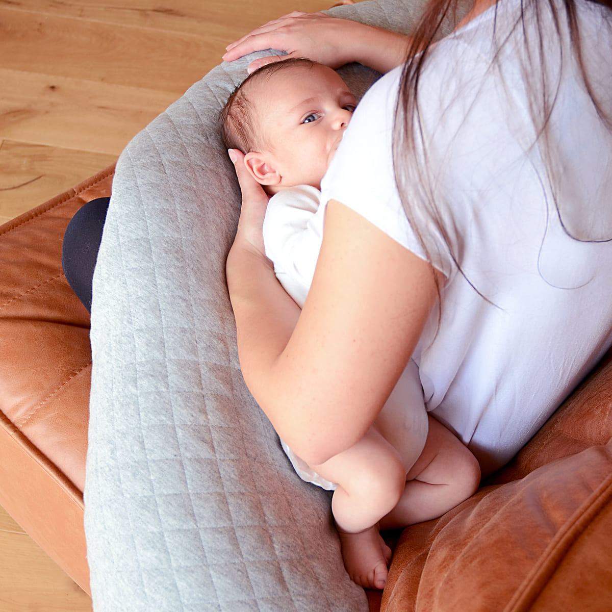 - Идеально подходит для кормления сидя и в положении на боку; также может укладываться и между колен
