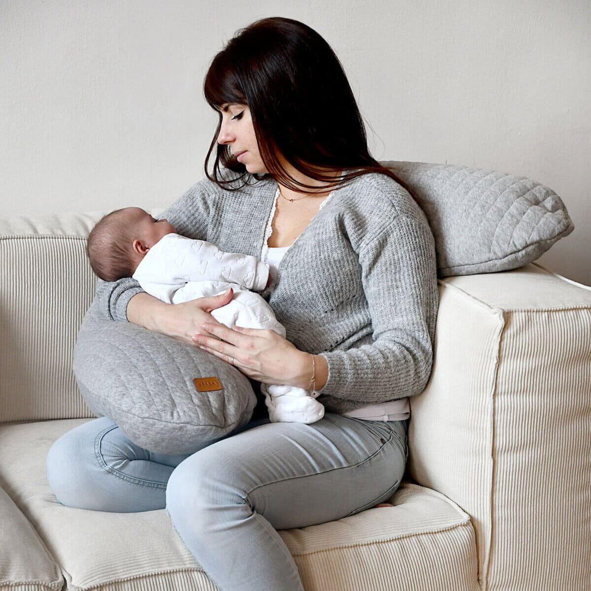 - Уменьшает нагрузку на спину во время кормления, дает отдых рукам, одновременно поддерживая ребенка на коленях
