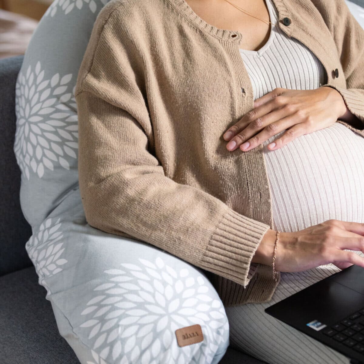 - Идеально подходит для кормления сидя и в положении на боку; также может укладываться и между колен