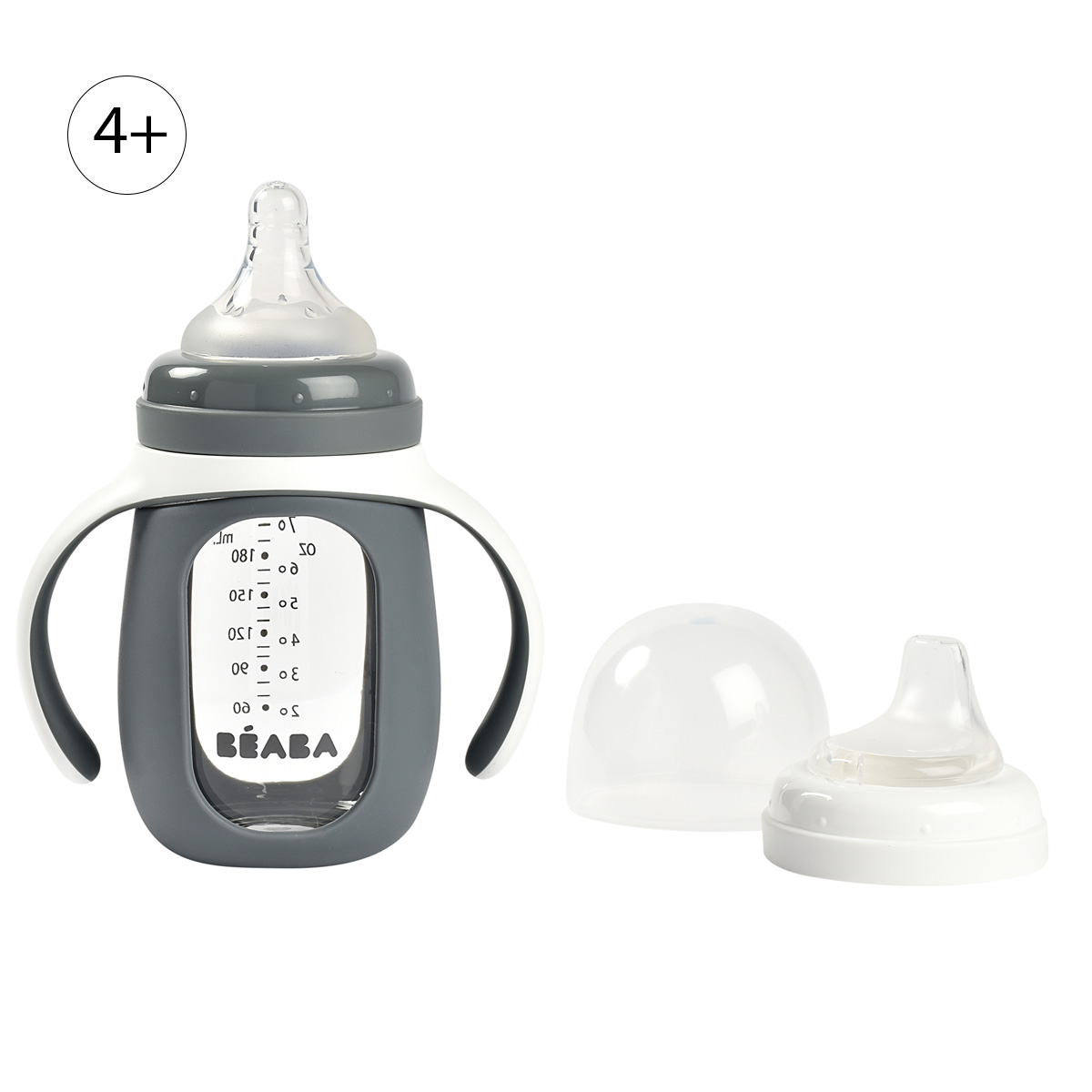 Обучающий стеклянный поильник-непроливайка BEABA — оптимальный вариант для малышей с 4-х месяцев, которые только начинают осваивать первый прикорм.