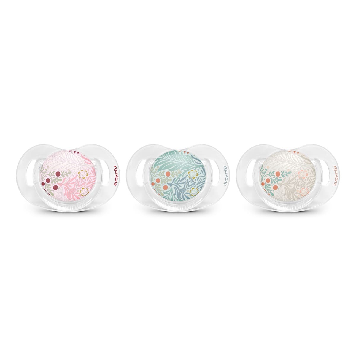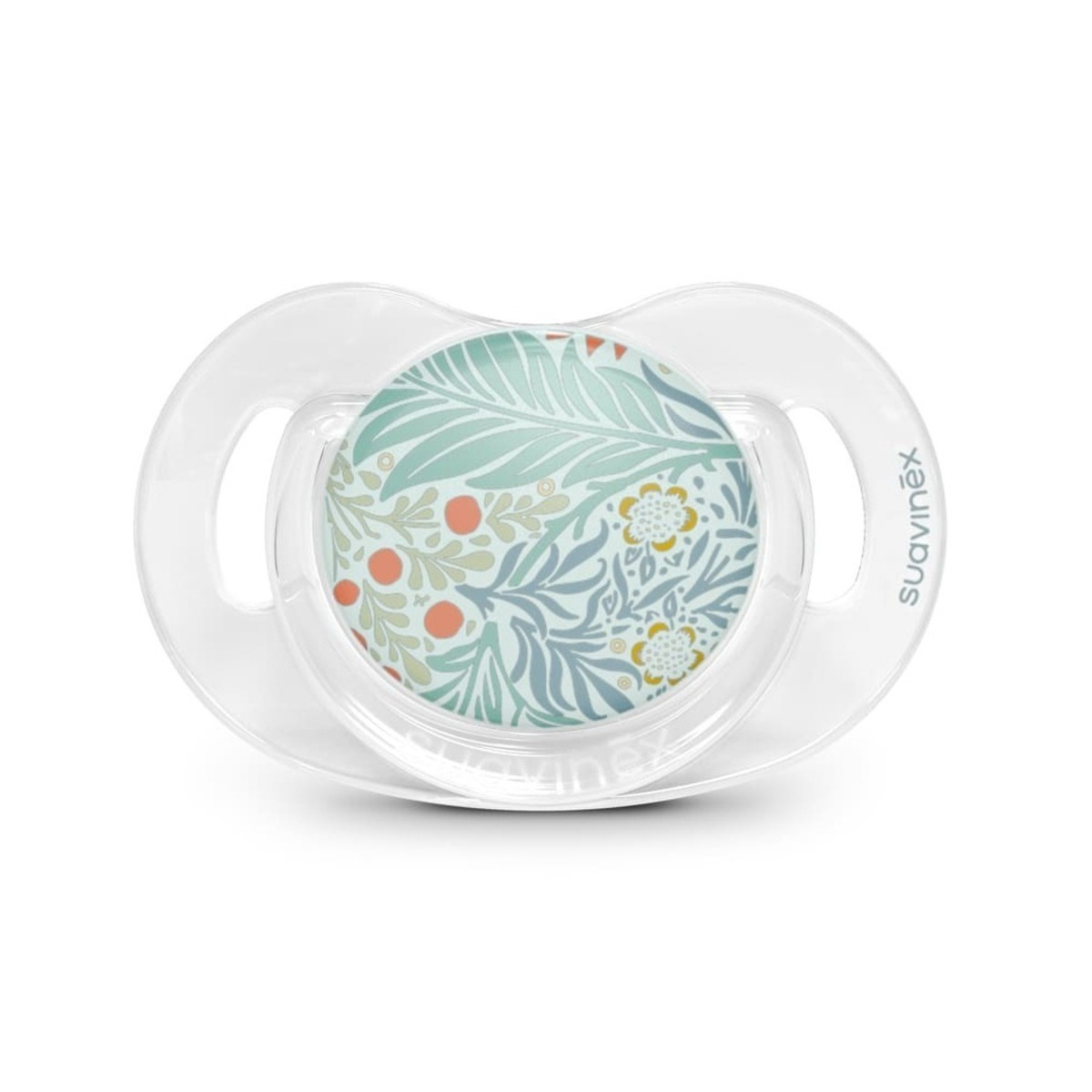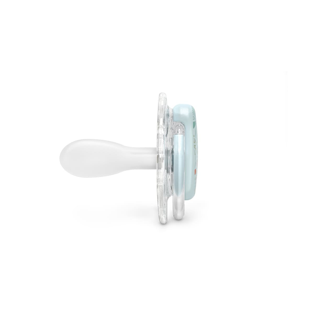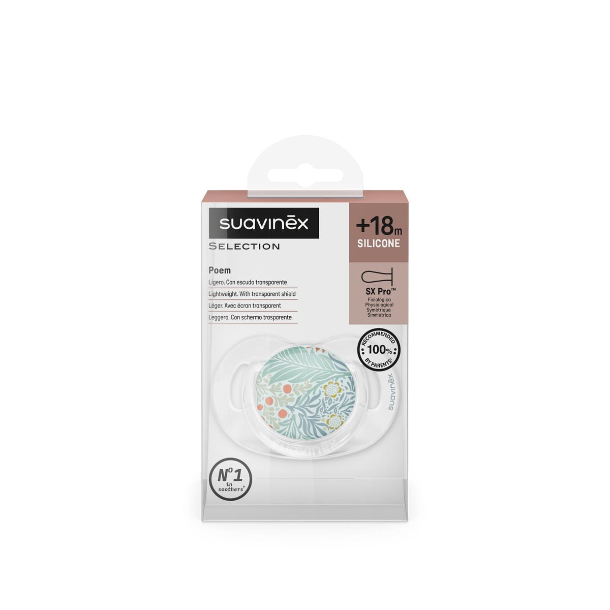 Пустышка Suavinex с силиконовой соской SX Pro, которая физиологически правильно располагается во рту ребенка, не препятствуя естественному развитию ротовой полости и прикуса.
