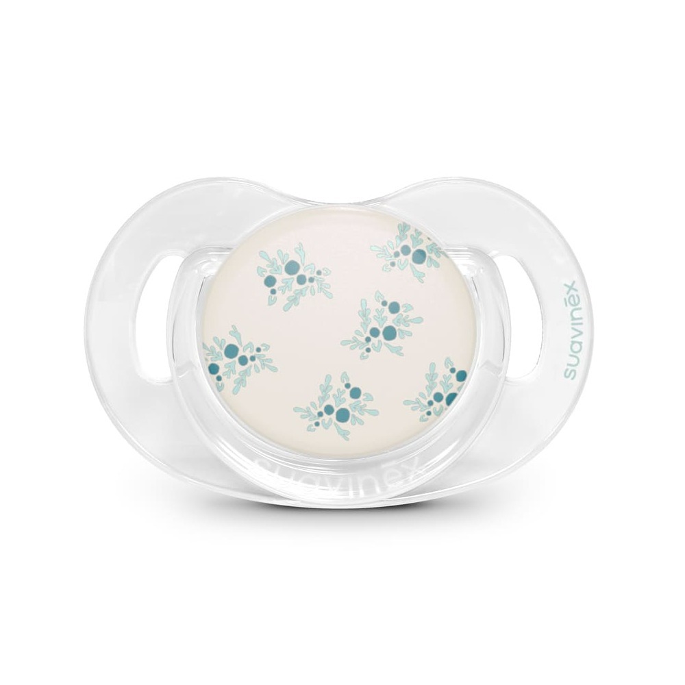Пустышка Suavinex с силиконовой соской SX Pro, которая физиологически правильно располагается во рту ребенка, не препятствуя естественному развитию ротовой полости и прикуса.