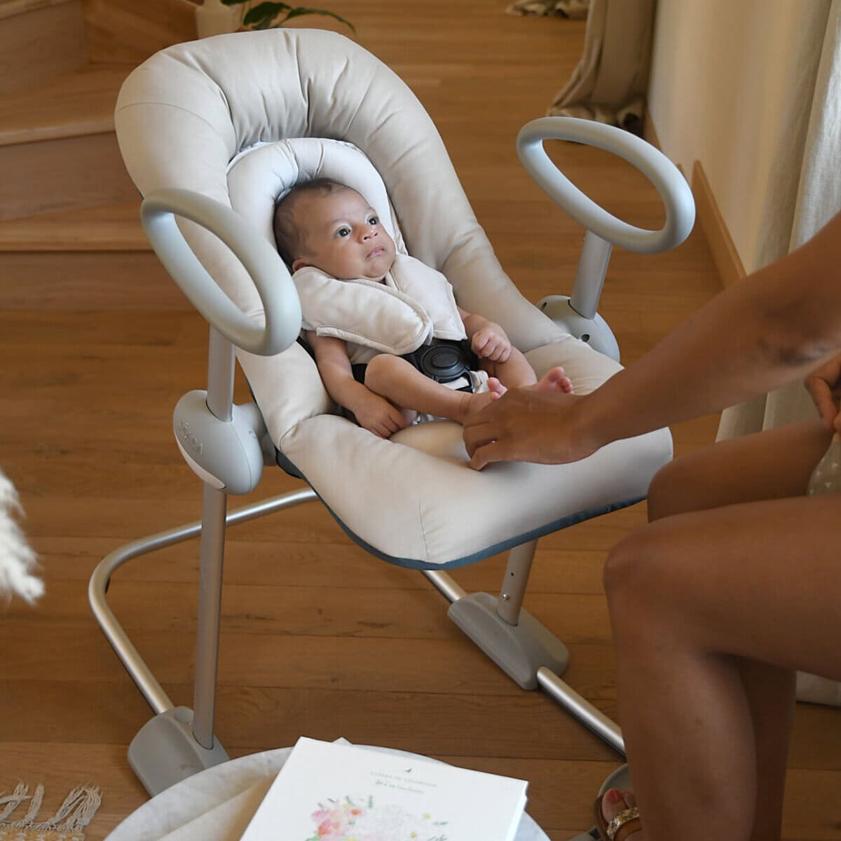 Уникальный шезлонг BEABA — незаменимый помощник молодых родителей, позволяющий присматривать за малышом, не отрываясь от своих дел. С помощью ручек шезлонг удобно переносить по квартире, чтобы малыш всегда находился рядом с вами.