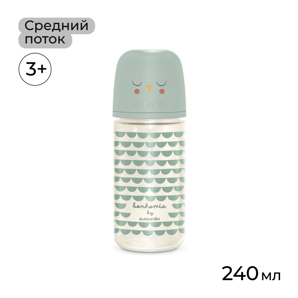 Стеклянная бутылочка для кормления Suavinex Bonhomia 240 мл, 3 мес+