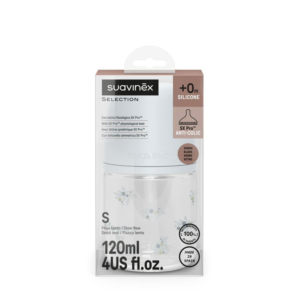 Антиколиковая стеклянная бутылочка Suavinex с силиконовой физиологической соской SX Pro делает процесс кормления максимально естественным и помогает предотвратить возникновения коликов.