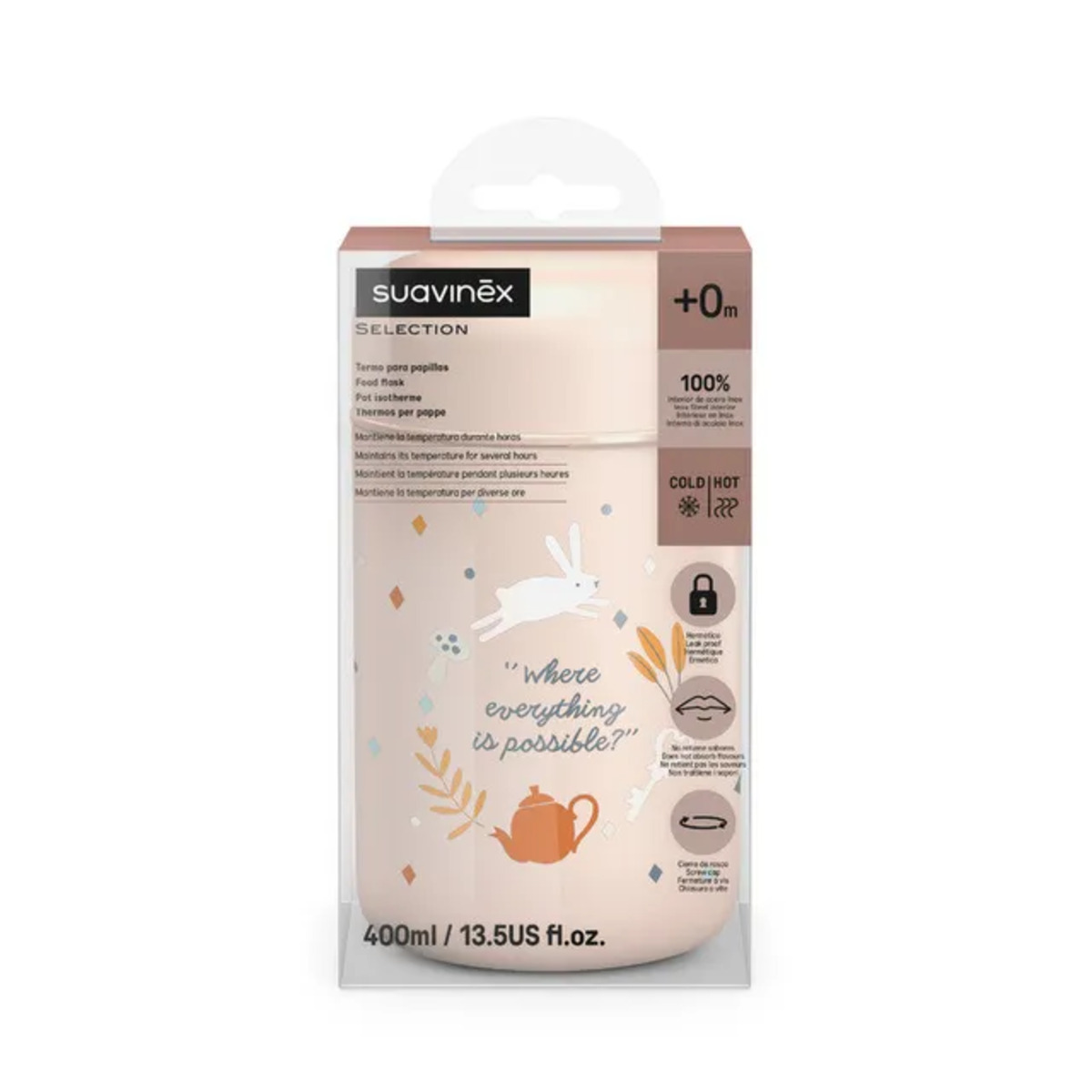 Термос для детского питания Suavinex Wonderland позволяет перевозить детское питание и сохранять его температуру в течение нескольких часов. Объем 400 мл оптимален для того, чтобы покормить ребенка, при этом занимает мало места в сумке для мамы или багаже при длительных поездках.