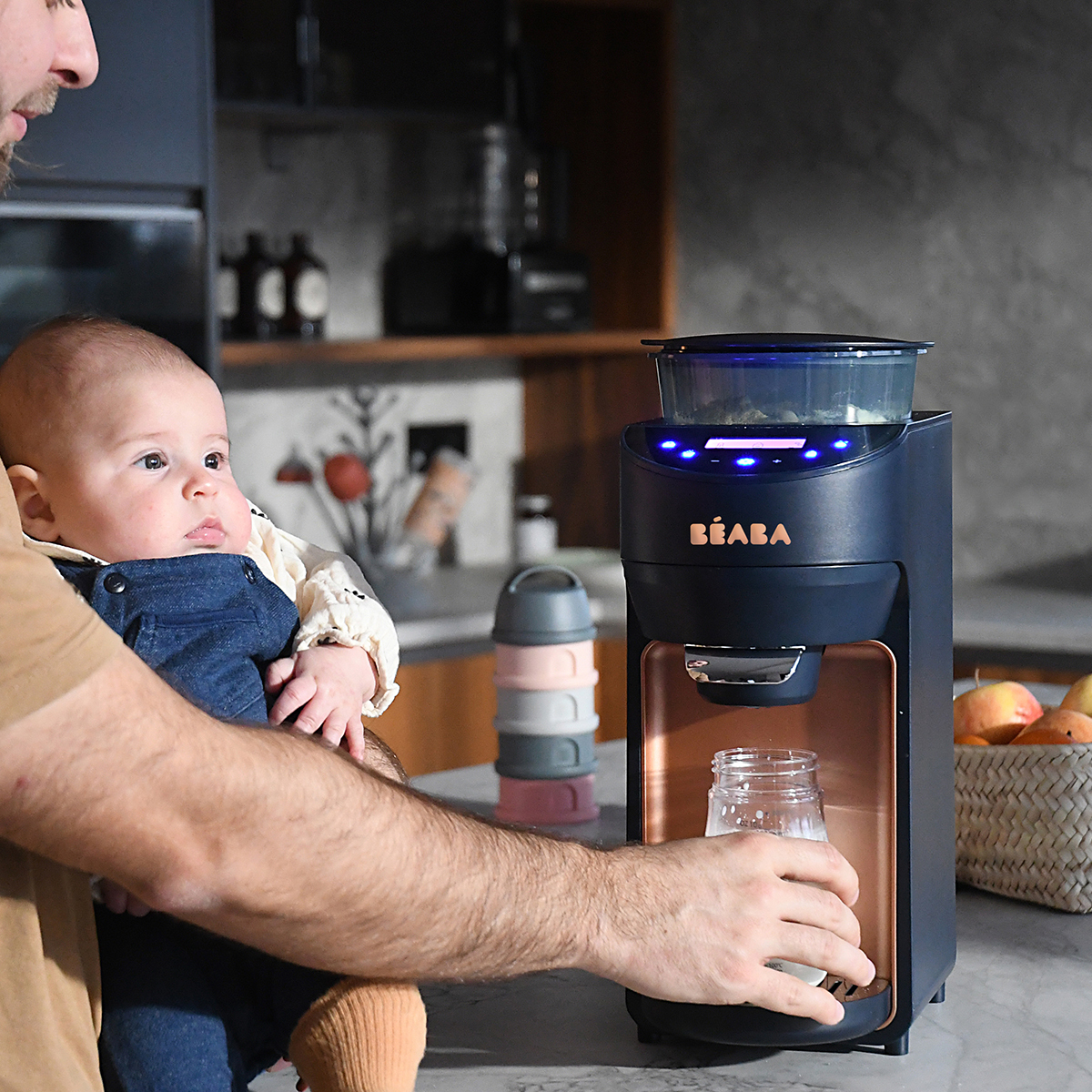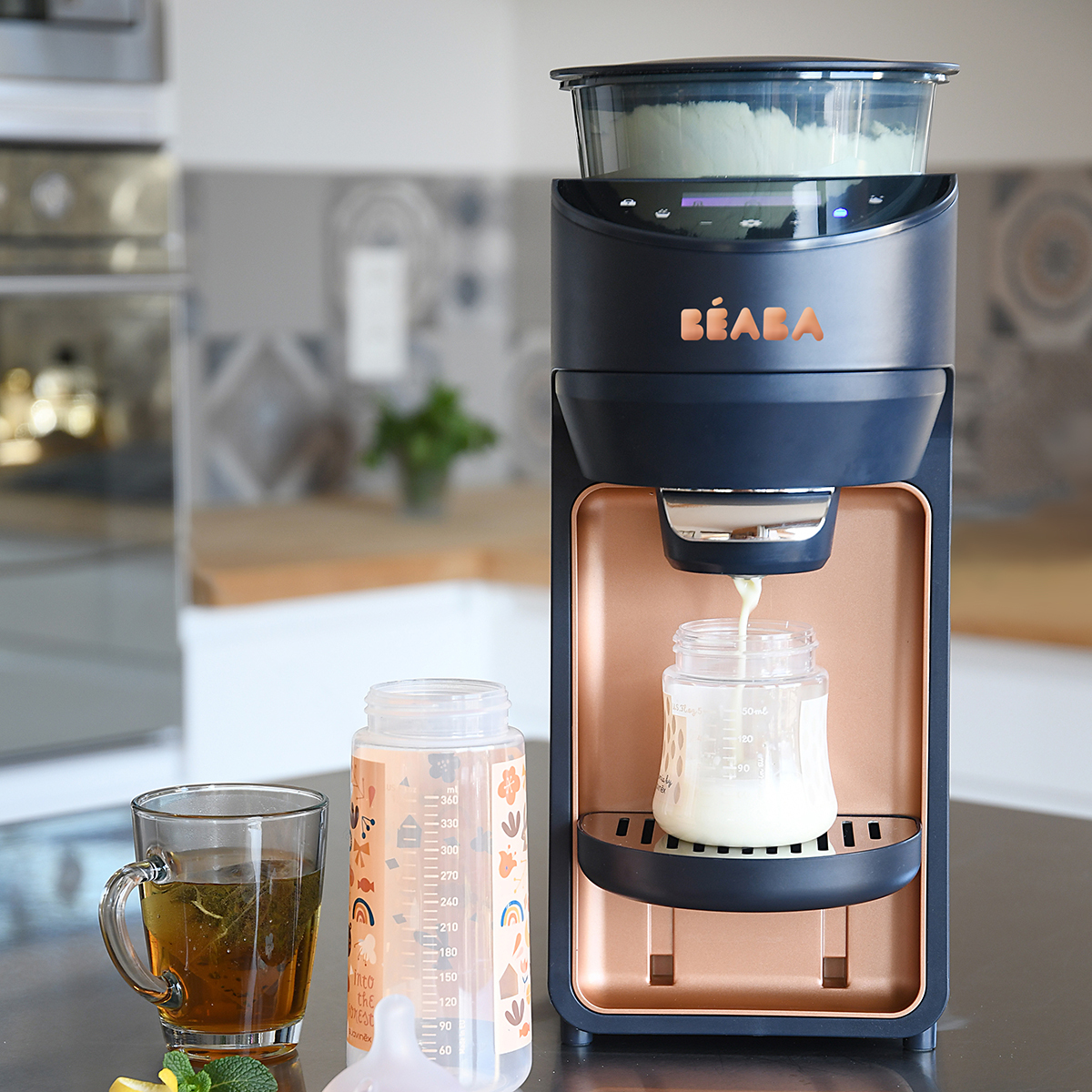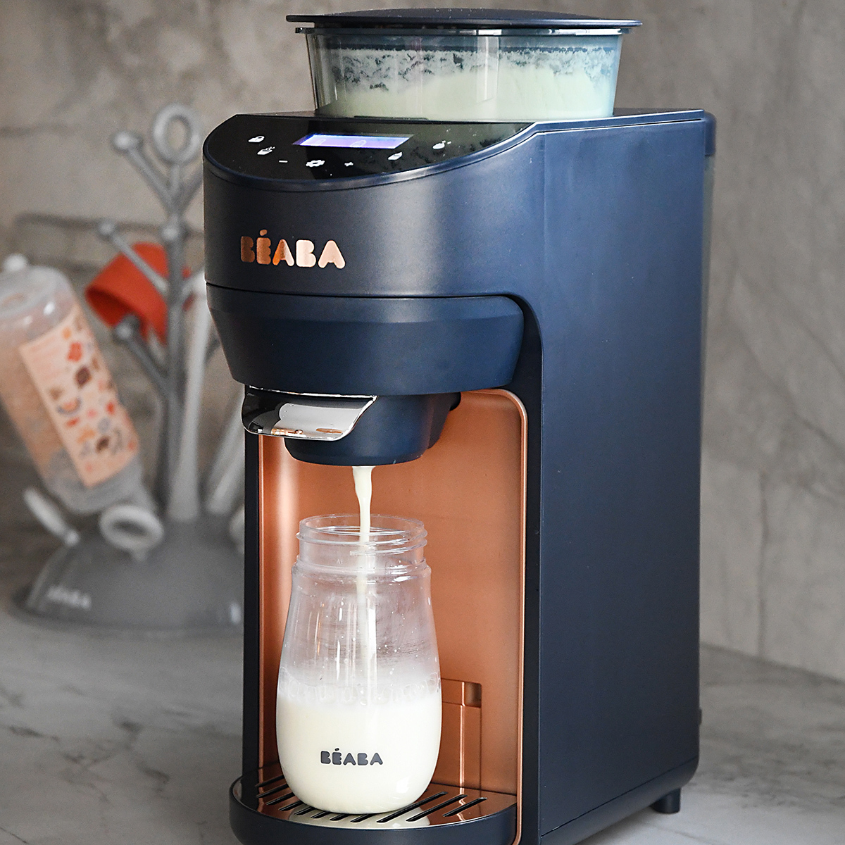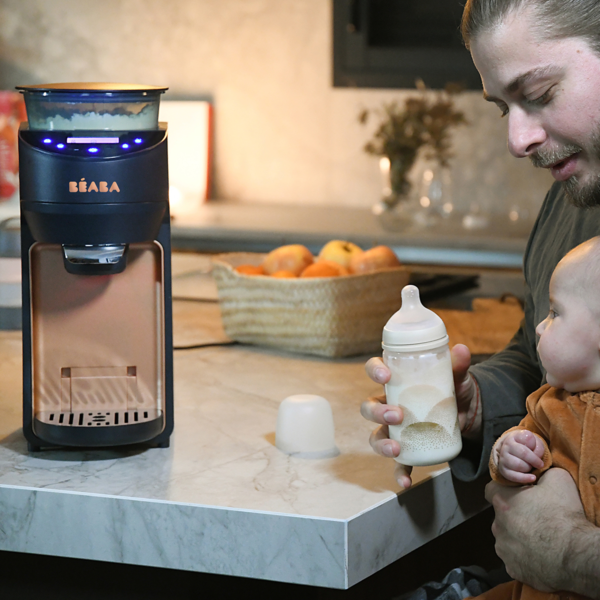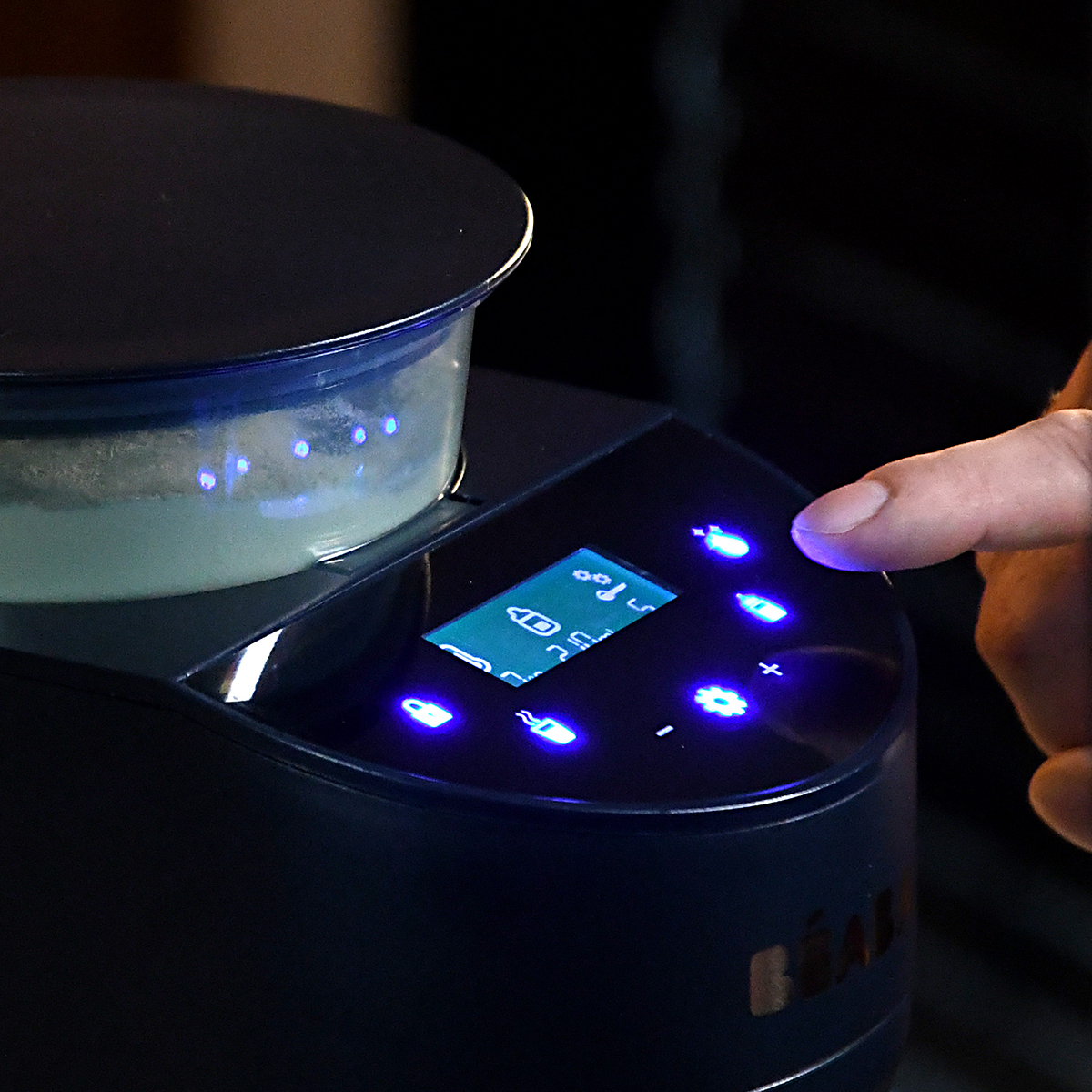 Всего одна кнопка, и Milkeo® Plus сама отмеряет необходимое количество сухой смеси, нагревает воду, а затем подает готовую смесь прямо в бутылочку.